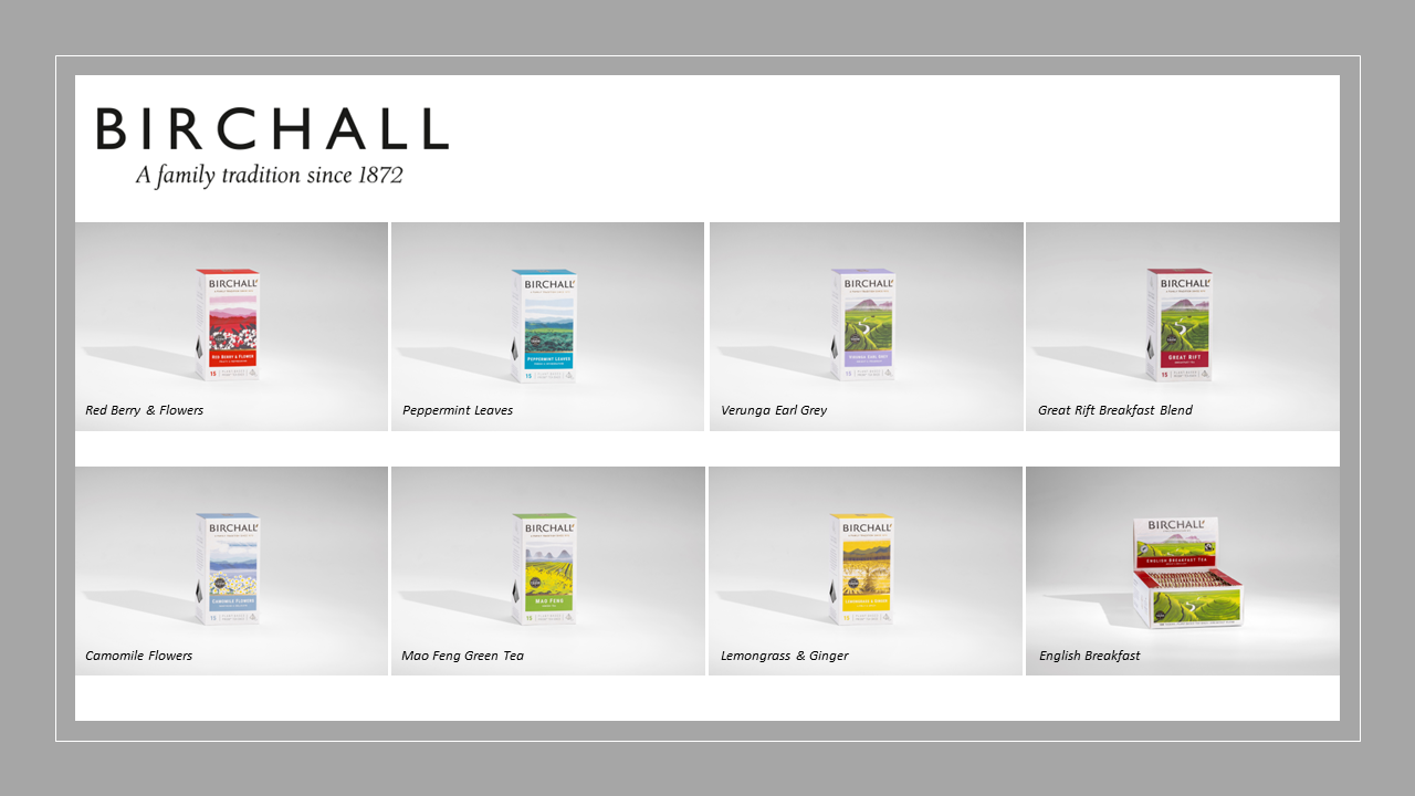Birchall’s award-winning teas are sourced exclusively from estates across East Africa. Quality is key and all their tea leaves are hand-picked from bushes grown at high-altitude in lush volcanic soil